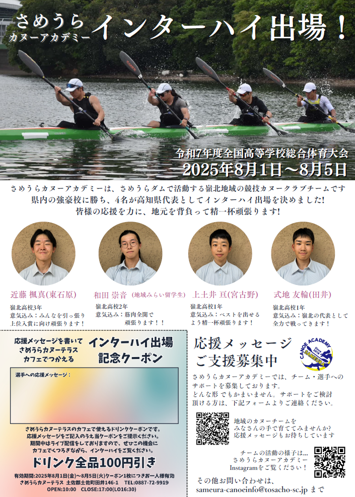 さめうらカヌーアカデミー インターハイ&四国総体出場決定!!