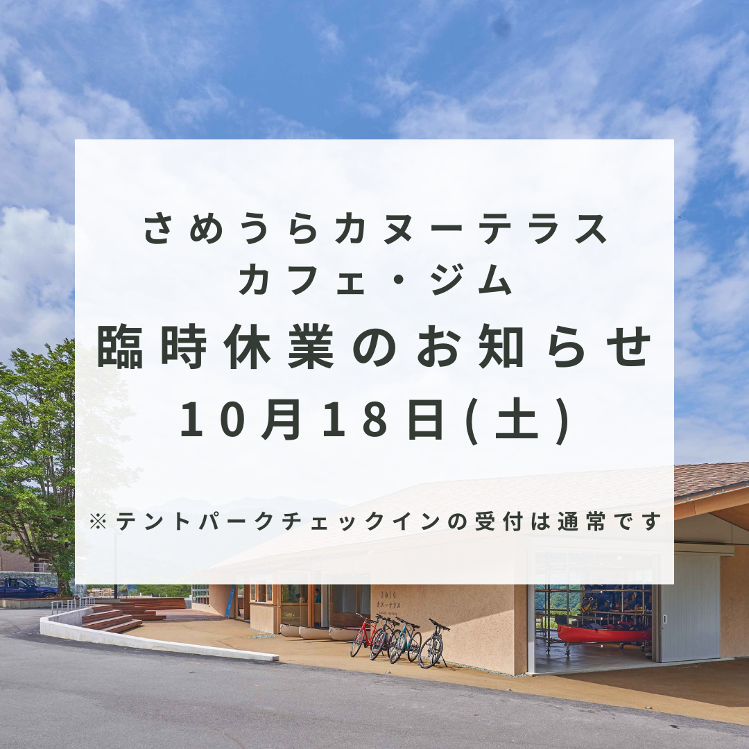 さめうらカヌーテラス(カフェ・ジム)臨時休業のお知らせ【10/18(土)】