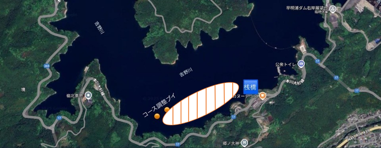使用エリア:土佐町カヌー用桟橋~1000mコース調整ブイ(オレンジのBigブイ)間で使用し体験会を開催予定です。