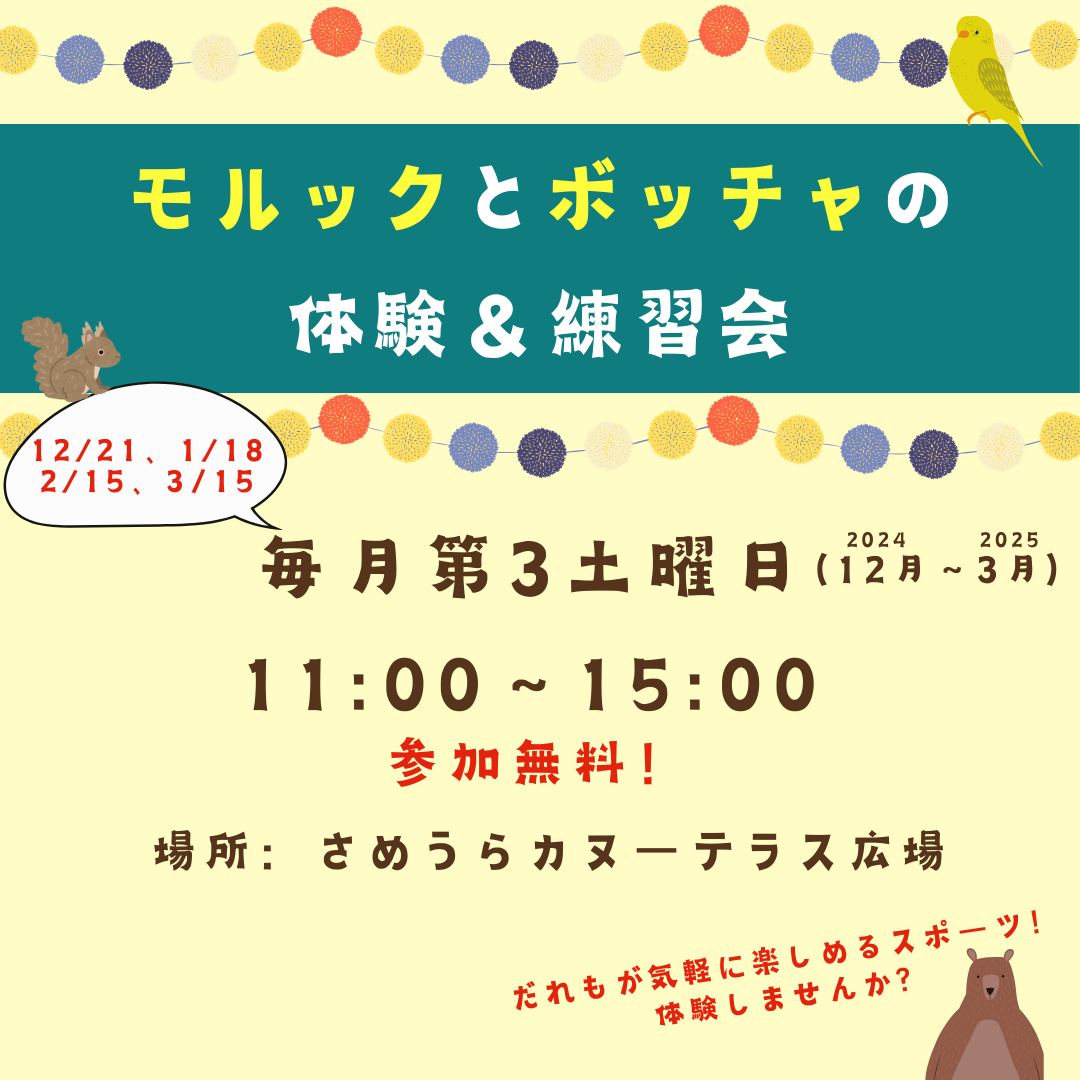 10月のスポーツの日に企画した「モルックとボッチャの体験&練習会」を、12月~2025年3月の間で毎月第3土曜日に実施します。